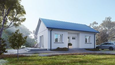 Propozycja projektu domu Skandynawski 57, jest skierowana do 2-3 osobowej rodziny. Metraż jest niewielki, natomiast rozkład pomieszczeń pozwoli domownikom odnaleźć komfort i poczucie optymalnej przestrzeni. Dom został podzielony na strefy: dwie sypialnie oraz strefę dzienną, czyli salon z kuchnią . Łazienka umiejscowiona została w centralnej części domu.