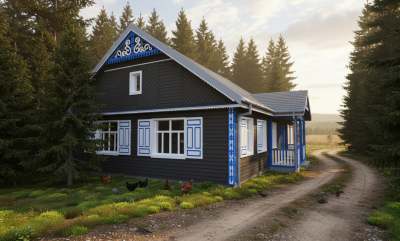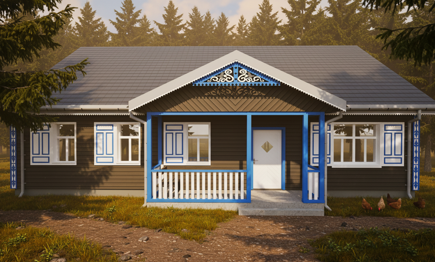 Słowik – Podlaski 107 to dom, który czerpie pełnymi garściami z tradycji Podlasia, interpretując ją z nowoczesną lekkością i funkcjonalnością. Ornamenty zdobiące szczyty, charakterystyczne okiennice oraz wyraziste kontrasty kolorystyczne sprawiają, że budynek ma niepowtarzalny charakter przywołuje regionalne dziedzictwo, jednocześnie pozostając domem wygodnym na co dzień.