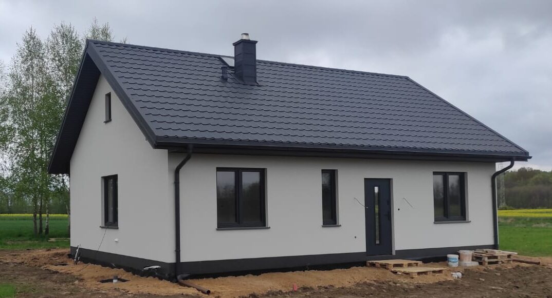 Elewacja tynkowana w kolorze wybranym przez inwestora, a dach pokryty blachodachówką Pruszyński Rubin. Strych doświetlają okna w ścianach szczytowych, zapewniając jasną przestrzeń do przechowywania. W budynku zastosowano nowoczesne rozwiązania: rekuperację, powietrzną pompę ciepła oraz kominek dla dodatkowego komfortu. Energooszczędny i funkcjonalny projekt w tradycyjnym stylu.